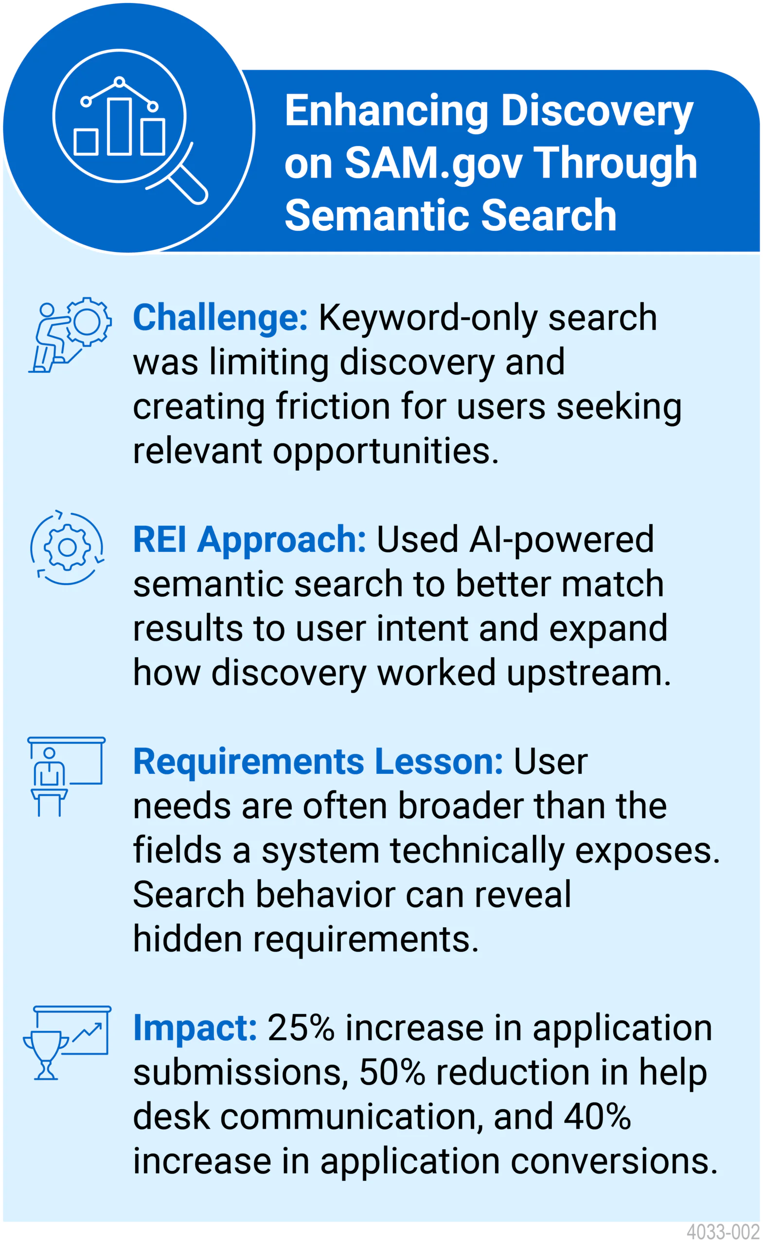 At REI Systems, this reflects a broader approach to responsible AI and customer experience, where AI strengthens how teams understand user needs while keeping decisions transparent, traceable, and aligned with mission outcomes.